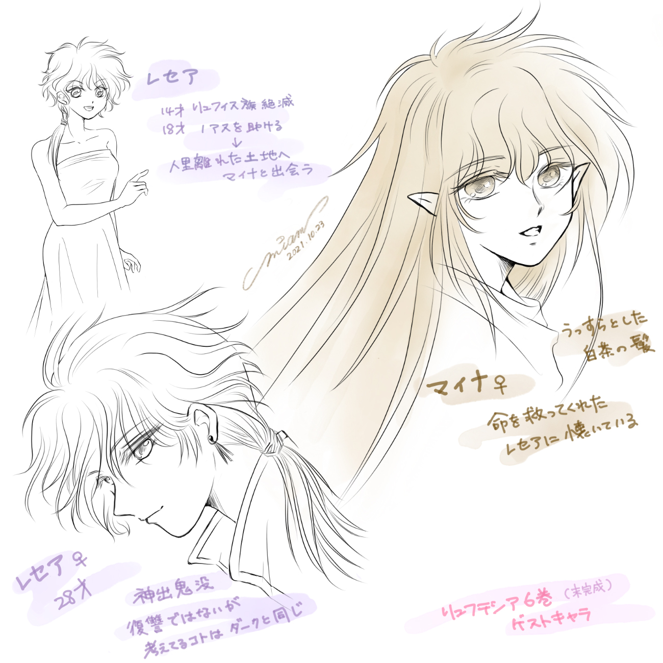 『リュフテシア』ゲストキャラ。紙類整理のためのリメイク。ラフ絵&公開できる部分だけメモ。